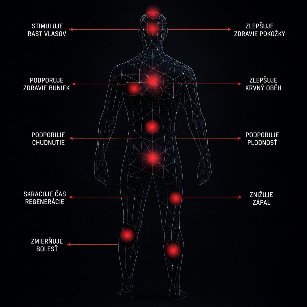 Červené a infračervené svetlo preniká do pokožky a stimuluje mitochondrie – „energetické centrá“ buniek. Tie produkujú viac bunkovej energie (ATP), čo podporuje regeneráciu, obnovu tkanív a vitalitu.